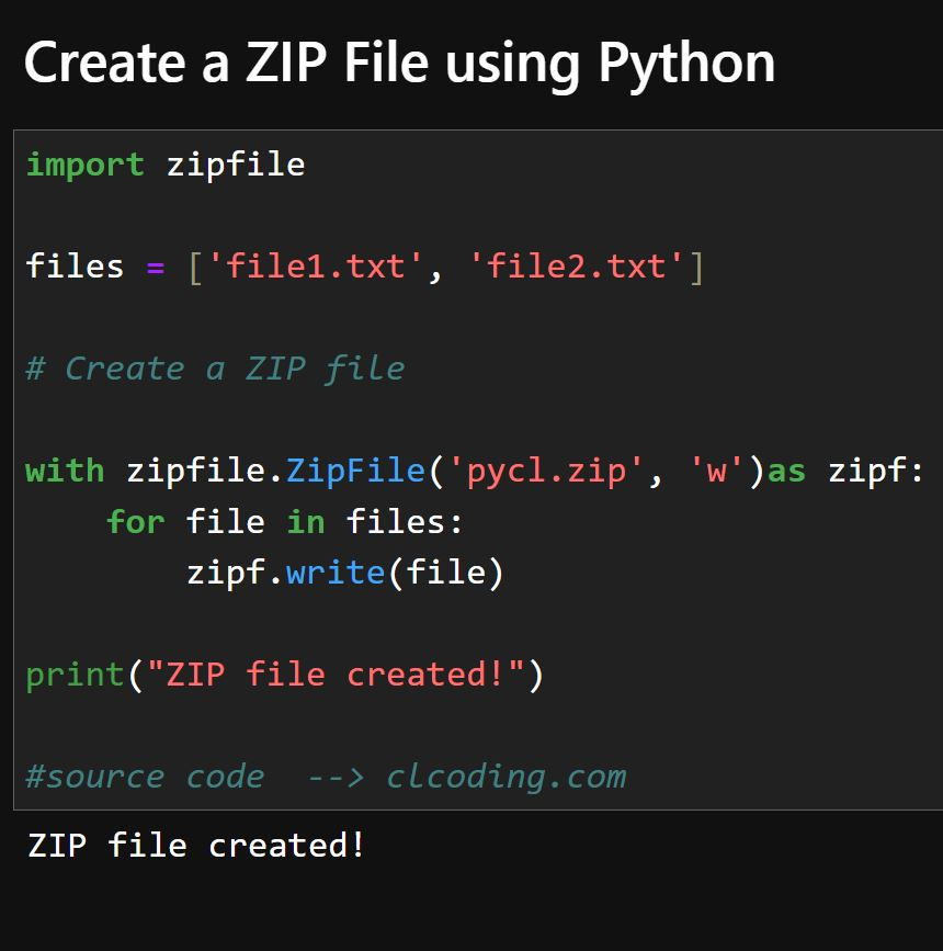 zipfilemodule, which allows us to create, read, write, and manipulate ZIP files.